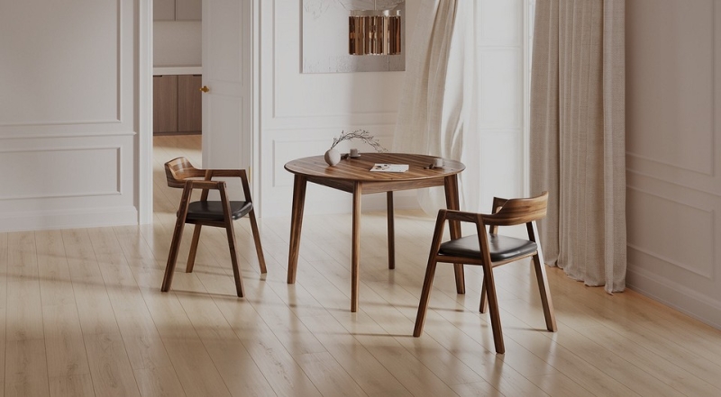 Кварцвинил водостойкий и теплее плитки. Чаще всего мы его используем для кухни, для небольших квартир с маленькими детьми — там, где нужна практичность без жертв. Ламинат 33-34 класса — вариант на случай, если бюджет ограничен, но хочется прочности. Он дешевле паркета, но часто выглядит очень похоже или почти так же. Современные коллекции часто не отличить от дерева. Идеально для гостиных и спален — там, где нет экстремальных нагрузок. Для кухни можно рассмотреть влагостойкие варианты.