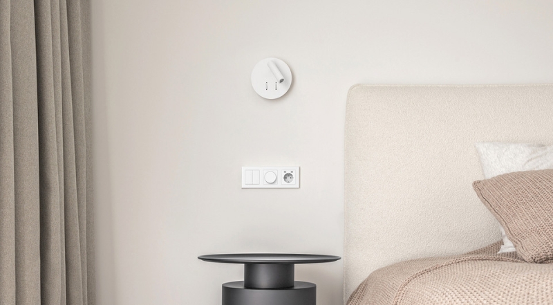 Электрофурнитура должна отвечать общей концепции. Например, для интерьеров в стиле лофт подойдут выключатели и розетки в черных рамках — они сочетаются с грубой штукатуркой или бетоном, выглядят сдержанно и даже брутально. А для сканди или минимализма можно выбрать белый цвет и матовую фактуру, чтобы подчеркнуть характерные особенности стилей.