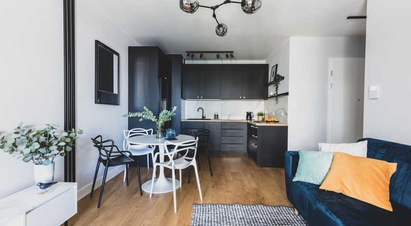 Нет ничего плохого в том, чтобы комбинировать напольные покрытия даже в масштабах небольшой квартиры. Например, для ванной комнаты будет идеален керамогранит, для кухни — он же или кварцвинил, для спальни или кабинета — практически любое.